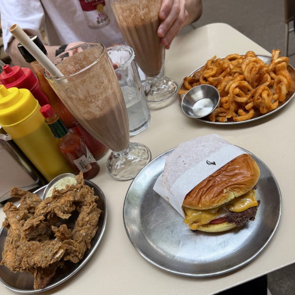 Bobo Burgers: me operaron y este fue mi comfort meal y que rico, ya había ido por los pancakes pero esta vez fui por hamburguesa, pollo frito y una malteada de chocolate, que rico estuvo :)